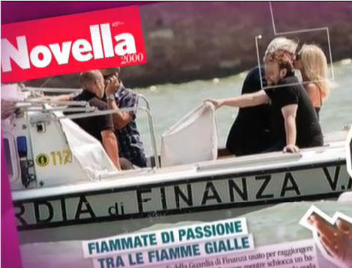 Potrebbe sembrare la scena di un film: lui e lei innamorati cotti che si baciano non curanti della presenza dei tre uomini attorno a loro, mentre a bordo del motoscafo della Guardia di Finanza, a Venezia, sul Canal Grande stanno per raggiungere il luogo dove si svolgerà una mostra.