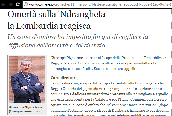Pignatone: “Lombardia reagisci alla ‘ndrangheta”