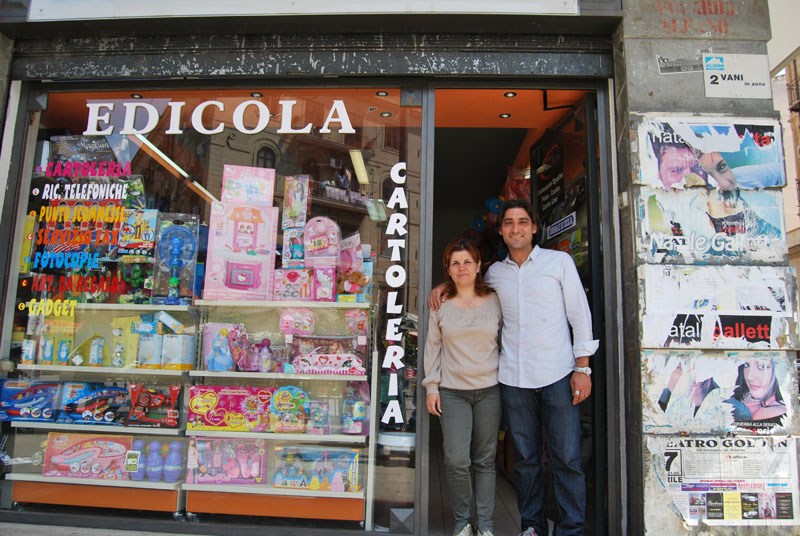Elena Pagano e Vincenzo Canzoneri titolari dell'edicola del BorgoElena Pagano titolare dell'edicola del Borgo VecchioGianfranco Cascone presidente del circolo Idv Sandro Pertini PalermoNicola Macaione vicepresidente circolo Idv Sandro Pertini