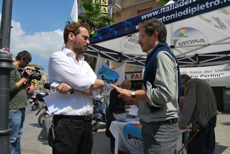 Pietro Giordano aiuta Crocifissa Lo Grande a compilare la richiestail gruppo Italia dei Valorigruppo Italia dei Valori gazebo della legalità