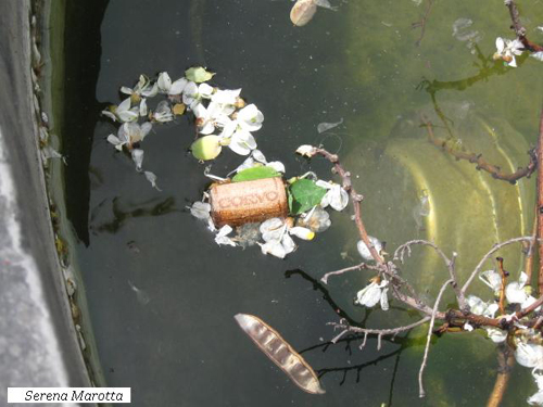A sostituire il gioco d’acqua, ci pensano i petali bianchi dei fiori che il vento ha strappato dagli alberi, insieme a qualche ramo ed un mucchio di foglie.