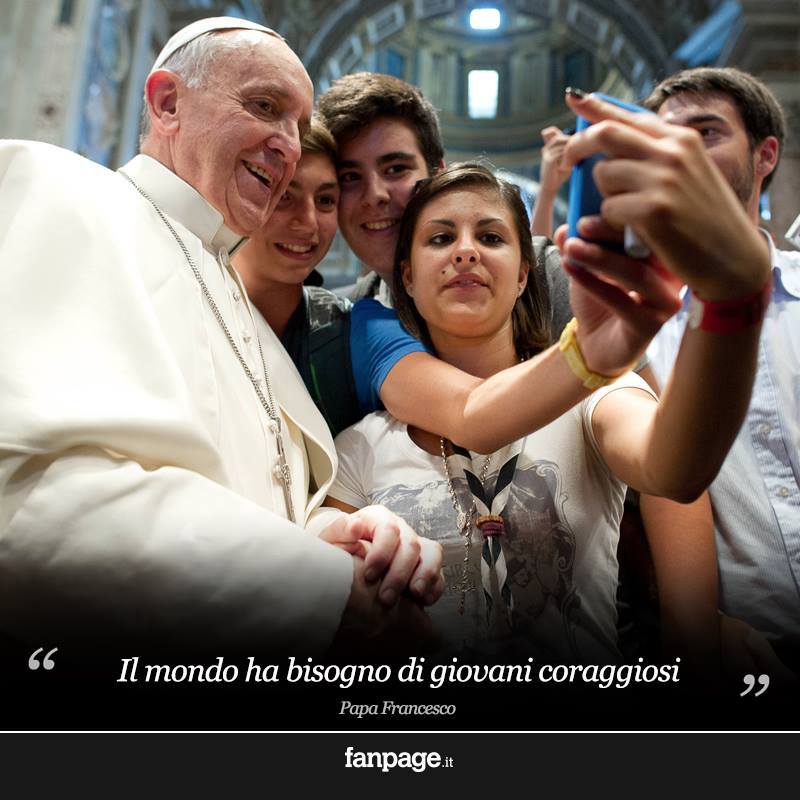 Papa Francesco si è sempre distinto dal suo predecessore per lo sguardo accogliente, per i gesti legati ad un modo diverso di essere chiesa, più reale, più concreto, qualche volta anche più grezzo. Sui social, allora impazzano le sue frasi. Noi ne vogliamo riportare qualcuna. Papa Francesco, nel 2013 è stato classificato dal Fund! al primo posto tra gli eroi dei giovani. Le sue parole sono sempre tenute in grande considerazione e basta guardare, almeno su Facebook, il numero di condivisioni per quelle frasi che riportano una sua foto e una sua frase. Ne abbiamo prese alcune da Fanpage e da altri siti che a vario titolo hanno costruito queste belle cartoline da condividere.